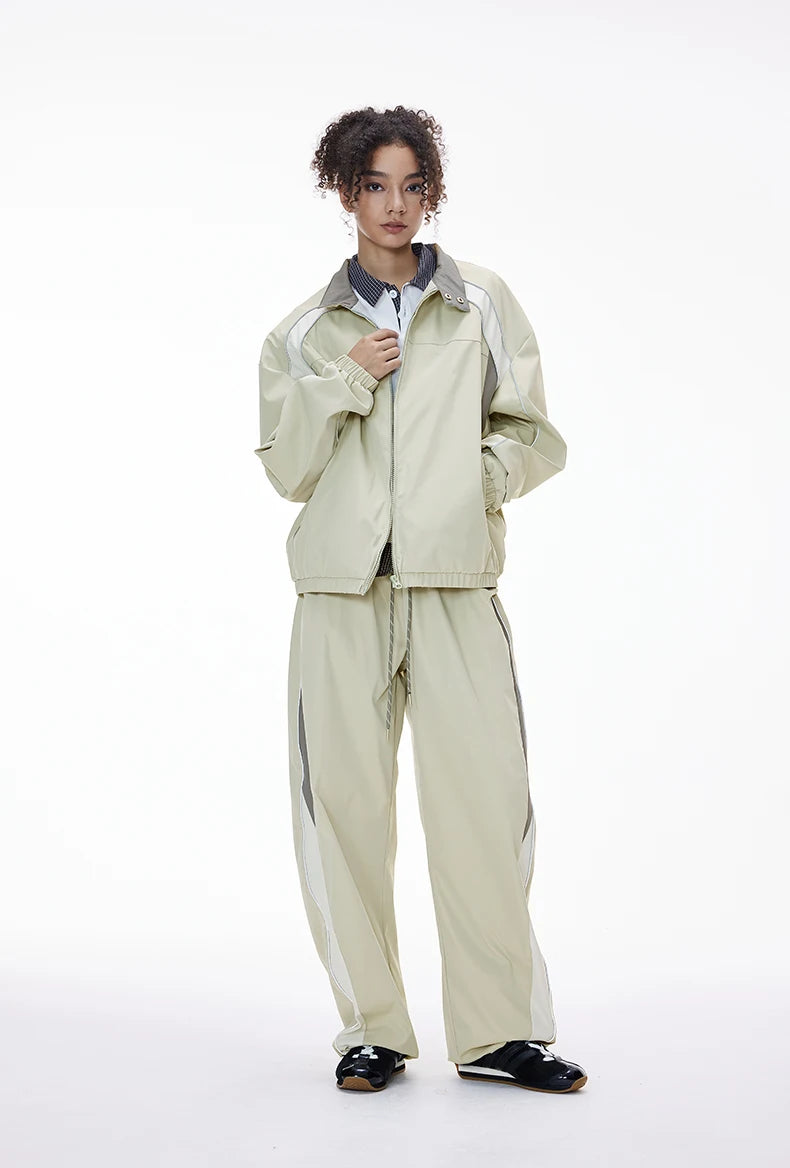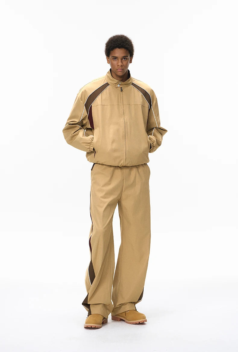 Crafted with premium 100% polyester featuring crewneck collar and pullover style top with elastic waist pants, this retro tracksuit combines practicality with styling versatility. Racing jacket design adds athletic appeal and retro charm. Wide leg casual pants ensure comfortable movement and relaxed styling. Standard thickness works perfectly for autumn and winter wear. Coordinated two-piece outfit creates effortless streetwear looks. Perfect for casual occasions with retro racing aesthetics. Each piece sold separately for mix-and-match versatility.