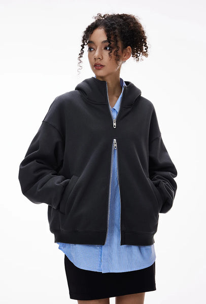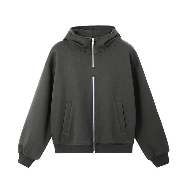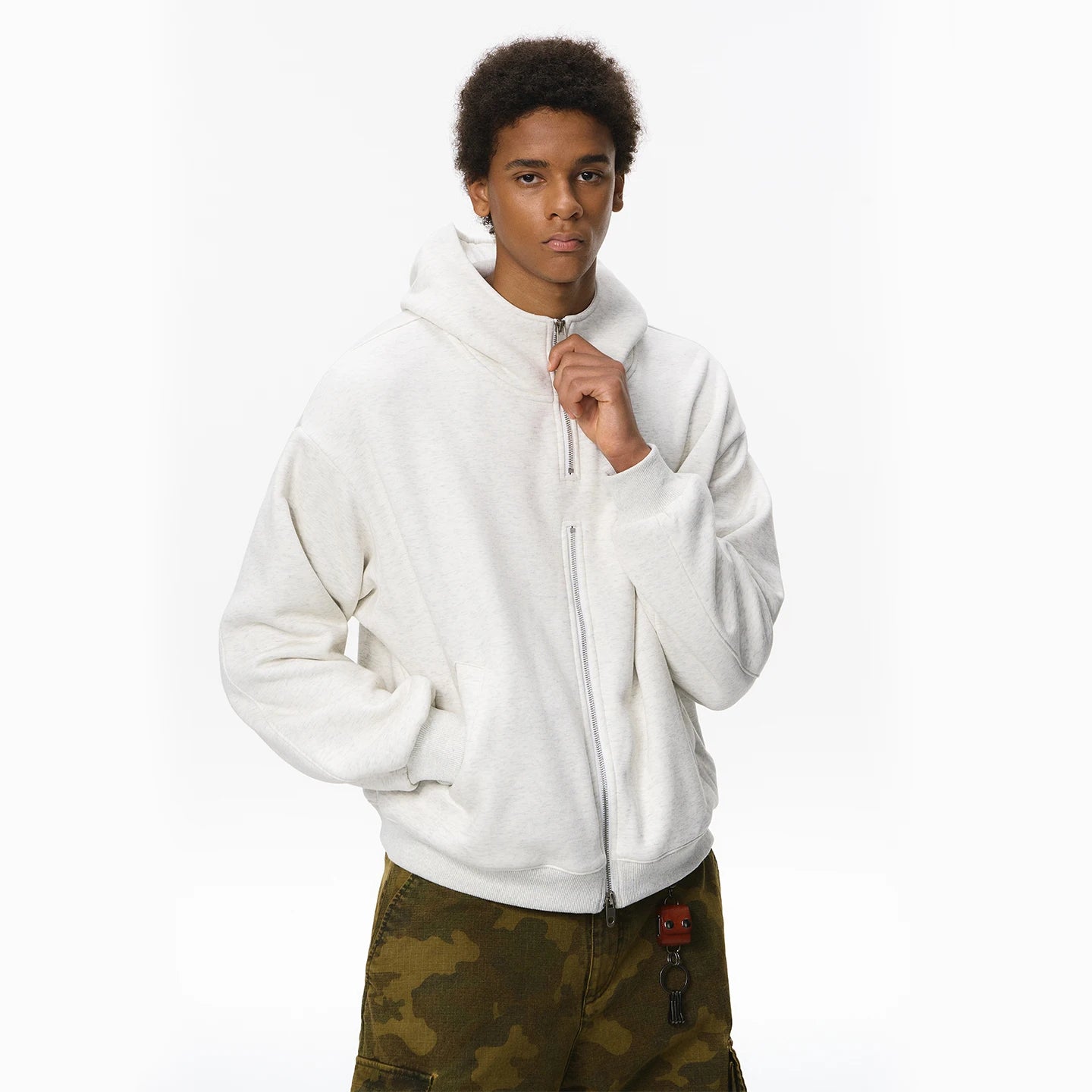 Crafted with premium polyester-cotton blend featuring hooded collar and double zipper closure with knit construction, this hoodie combines practicality with styling versatility. The hooded design with dual zippers combines style and functionality, making it easy to put on and take off. The relaxed fit allows for comfortable movement, while the slightly wide silhouette accommodates various body types. Perfect for daily commuting or casual outings, the hooded design adapts to multiple scenarios, offering a loose and comfortable fit without restriction. The light gray color exudes a minimalist and sophisticated vibe, while the dual zipper design enhances the overall elegance of the outfit. This classic style is designed for long-term wear and offers excellent value for money. Features double-zipper hoodie with double pull design, stand-up collar with hood, and short fit. Standard thickness works perfectly for autumn and winter casual streetwear.