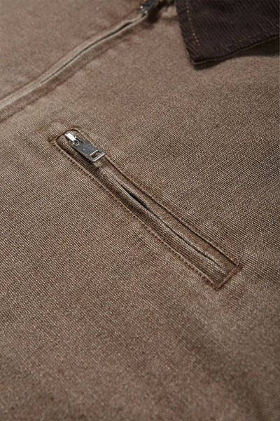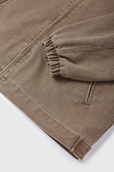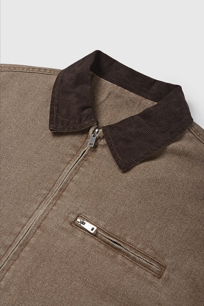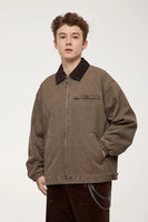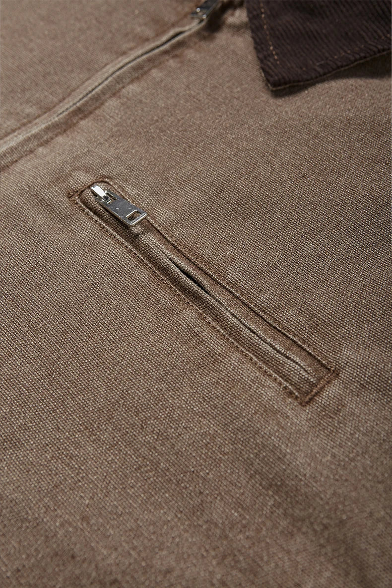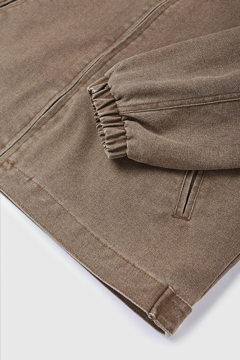 Authentic vintage wash treatment delivers lived-in character and retro appeal. Detroit cargo styling honors Motor City's industrial workwear legacy. American retro coat design offers timeless authenticity and rugged charm.