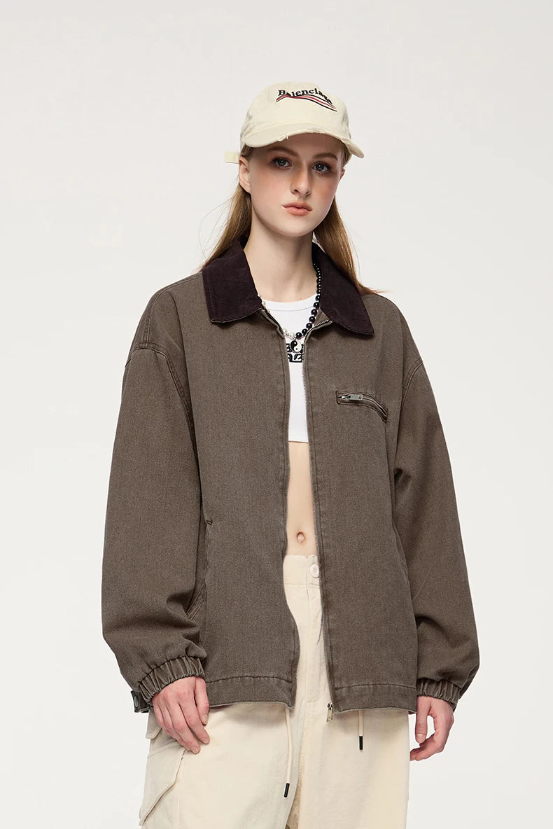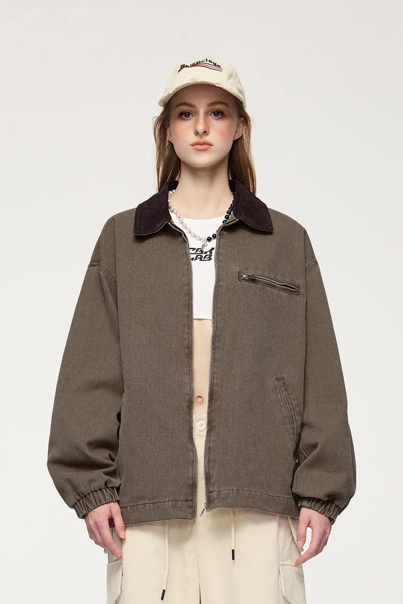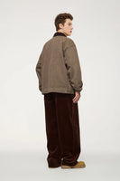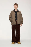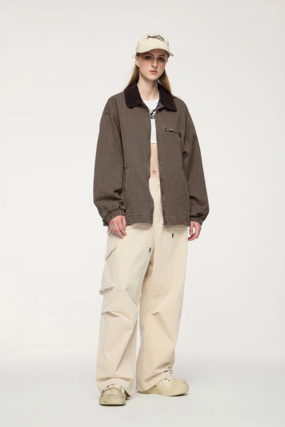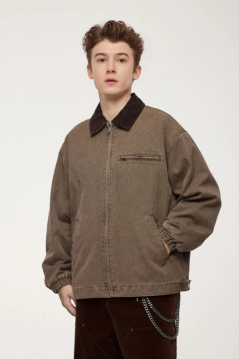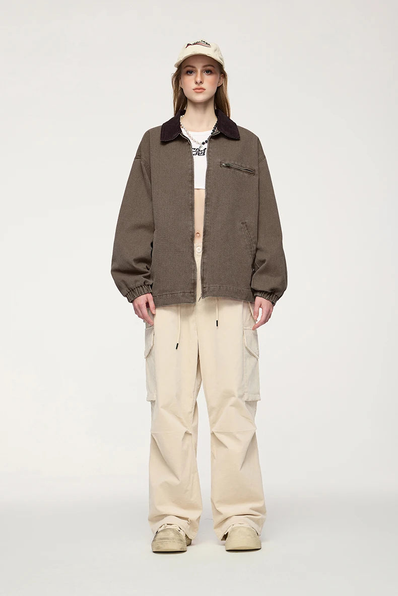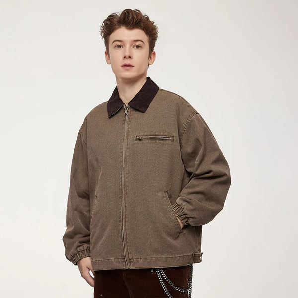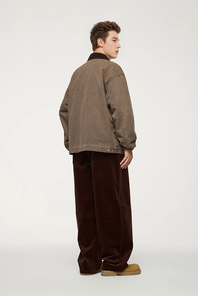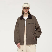 Turn-down mandarin collar creates distinctive neckline and classic workwear aesthetic. Thick construction provides warmth and durability for autumn and winter wear. Multiple cargo pockets deliver functional utility and authentic detailing.