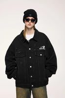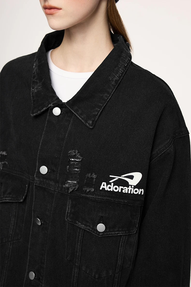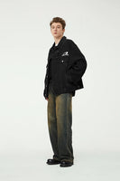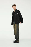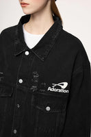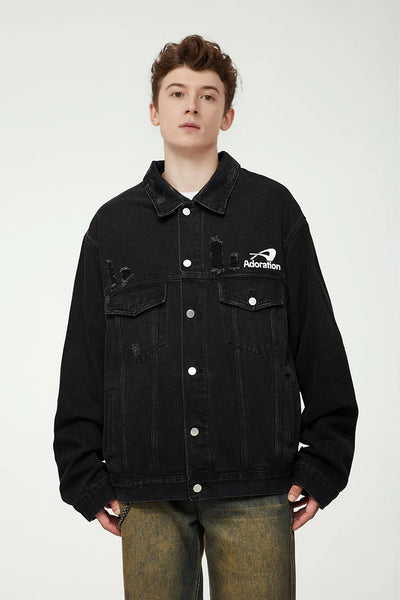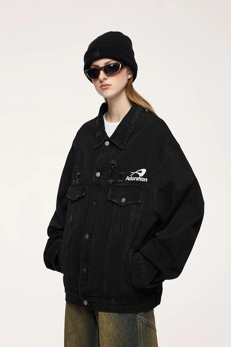 Crafted with premium cotton-polyester-viscose blend featuring mandarin collar and zipper closure, this unique denim jacket combines practicality with styling versatility. The graphic distressed details add character while the loose fit ensures all-day comfort. Stay stylish with this versatile outerwear that turns heads on the street.