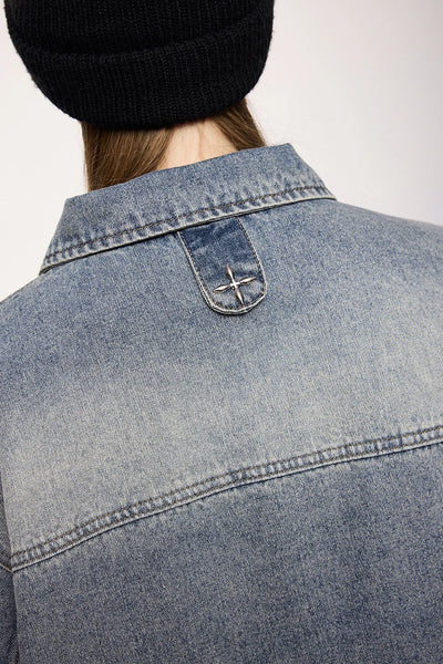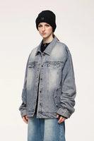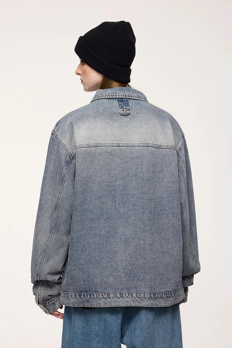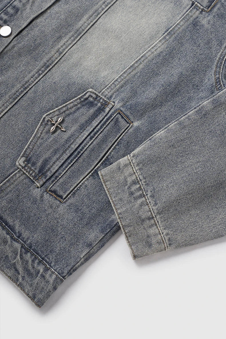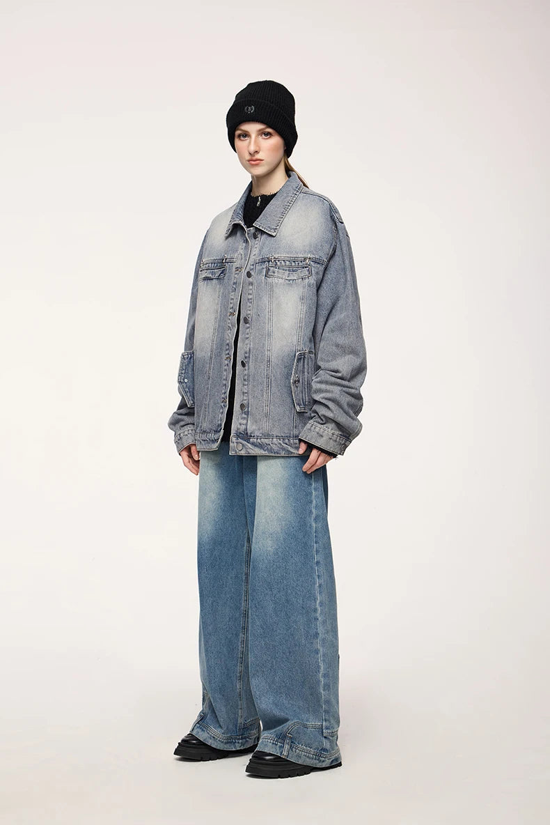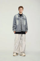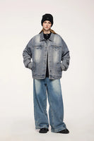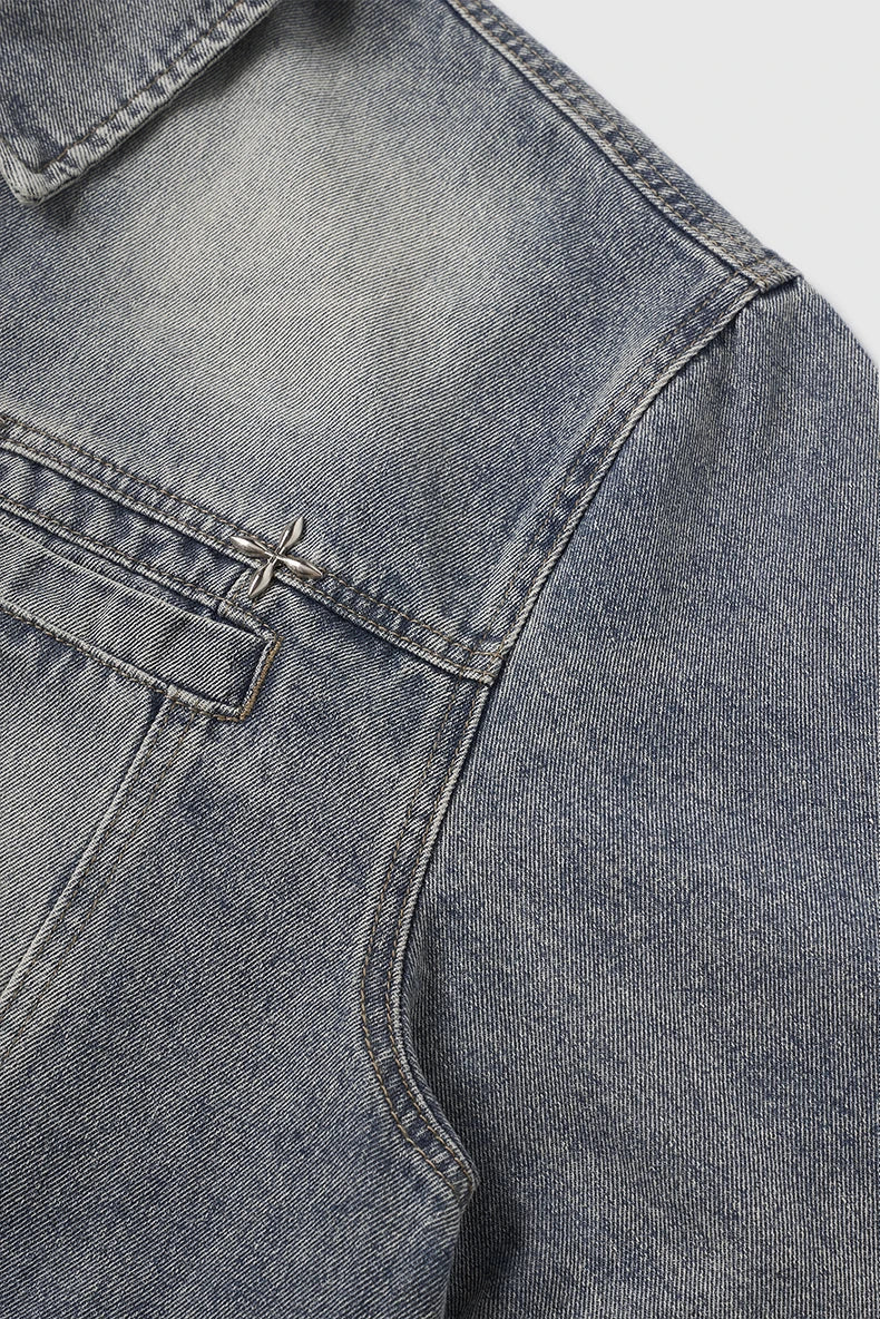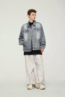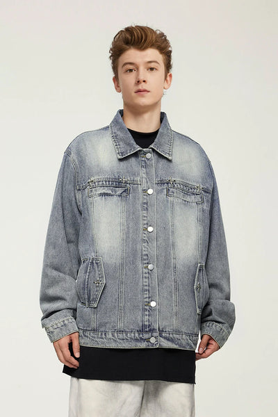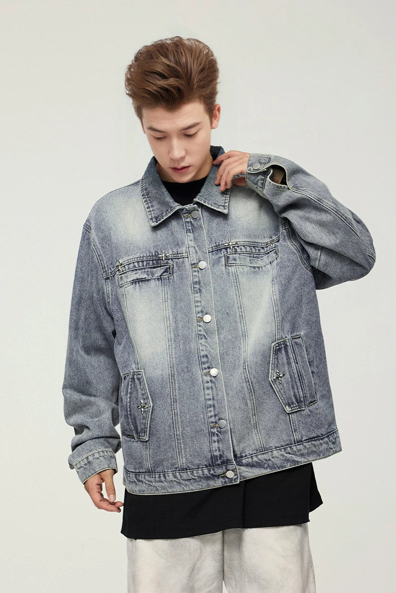 Embrace timeless style with the Americana Denim Jacket. This vintage washed design features American loose fit with stud design details and mandarin collar, perfect for those who value classic denim heritage, casual versatility, and unisex styling.