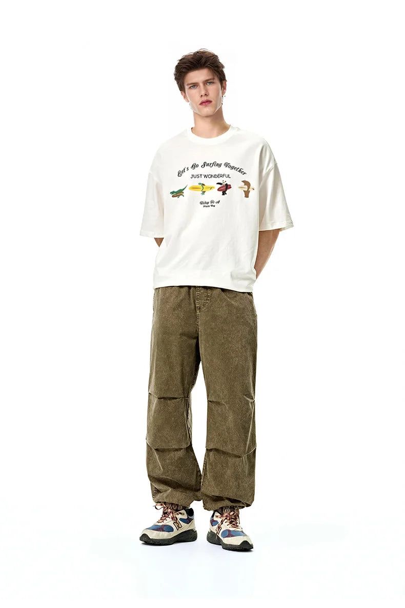 Vintage streetwear trousers styling delivers urban authenticity. Regular fit accommodates various body types. Midweight construction provides comfortable wear for spring and summer. Perfect for casual occasions with rugged character.