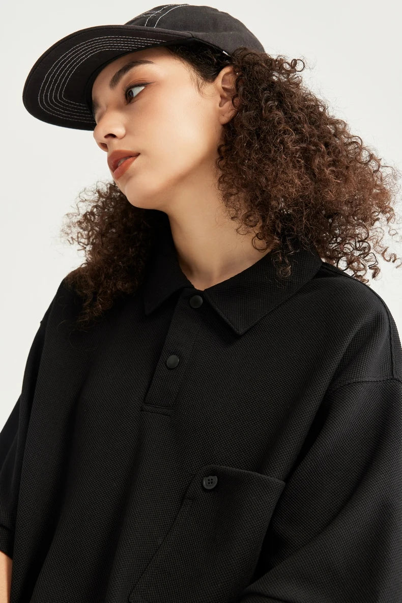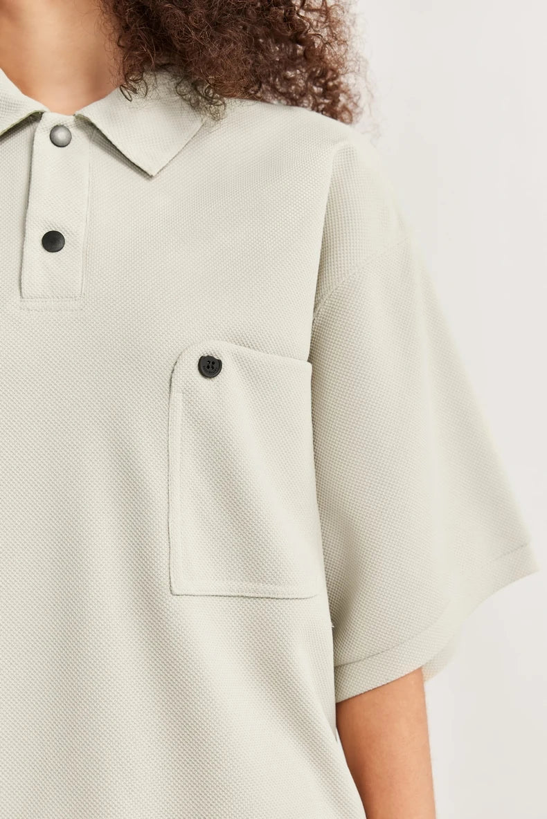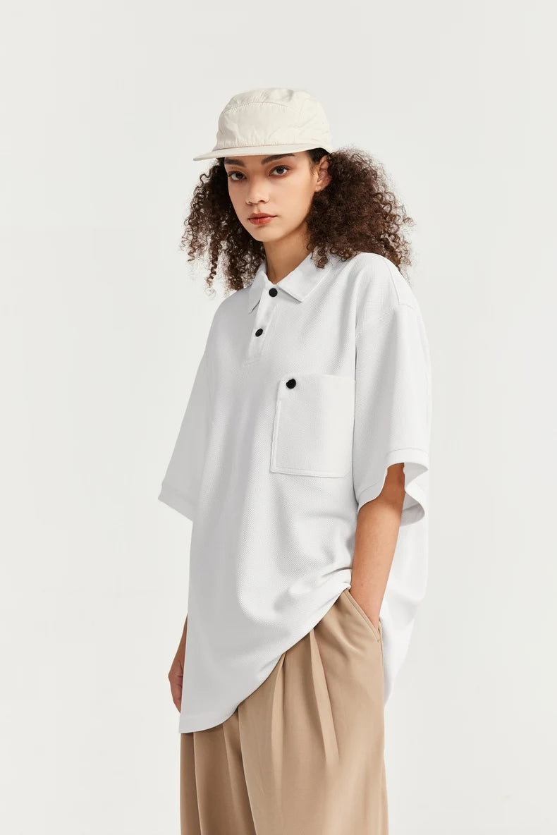 Elevate your smart casual style with the Clouded Oversized Shirt. This 240gsm heavyweight pique polo design features anti-pilling polyester construction with classic front pocket detailing, perfect for those who appreciate premium quality and refined versatility.