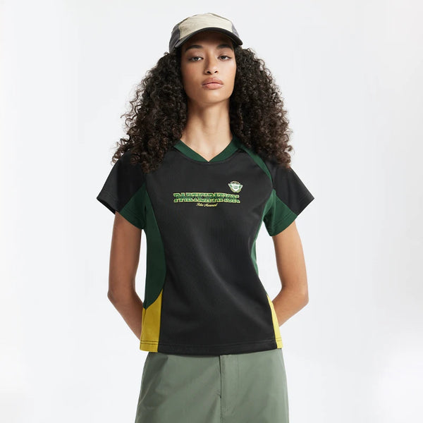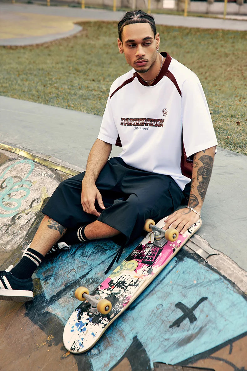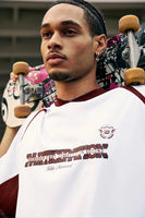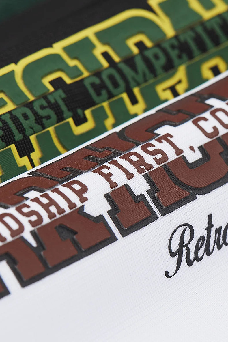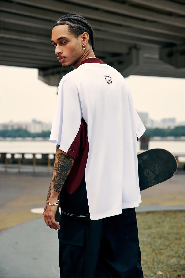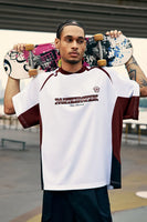 Celebrate connection with the Friendship First Oversized T-Shirt. This patchwork graphic design features breathable polyester construction with vintage American style, sporty cut, and colorblock short sleeves, perfect for those who value loyalty, camaraderie, and meaningful relationships.