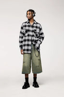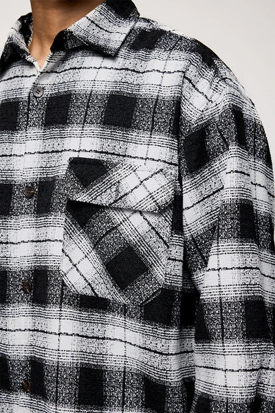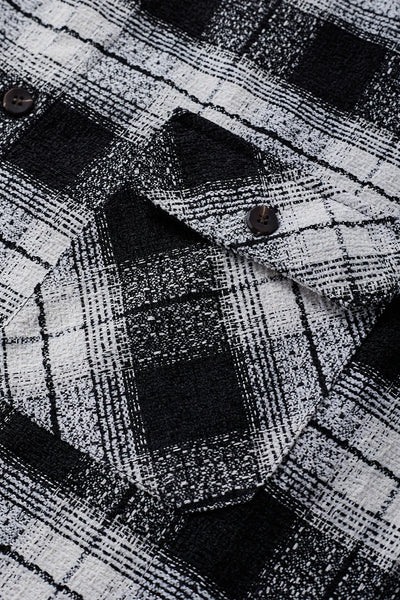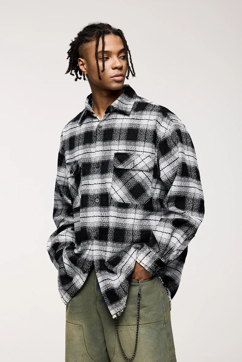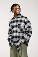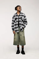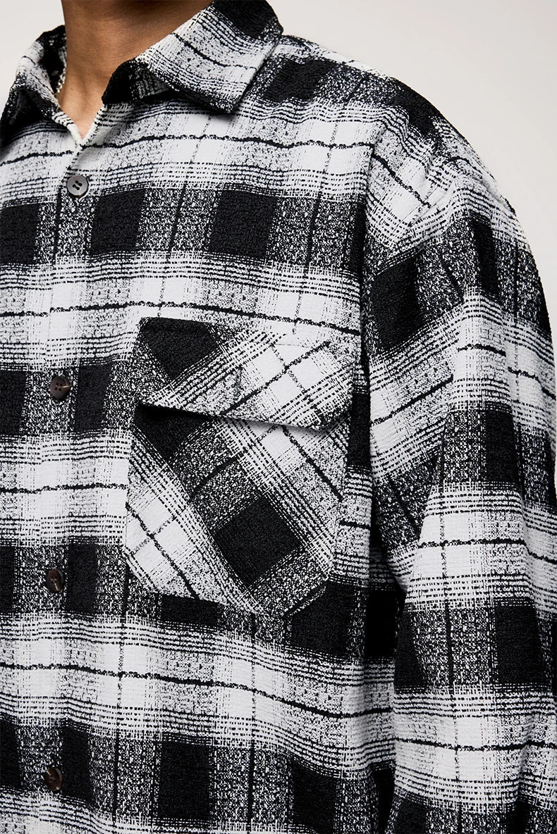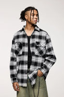 Embrace rugged style with the Lumberjack Oversized Shirt. This classic plaid shirt jacket features woolen-feel polyester-cotton construction with front pocket detailing and single breasted closure, perfect for those who appreciate timeless outdoor aesthetics with contemporary comfort.