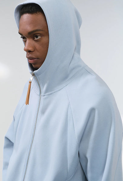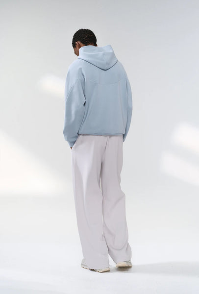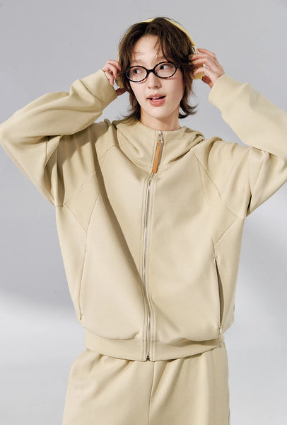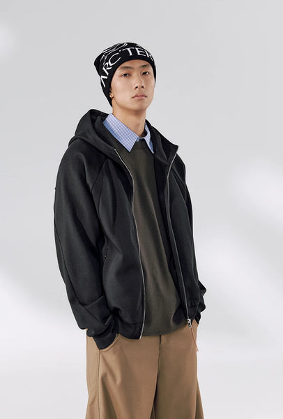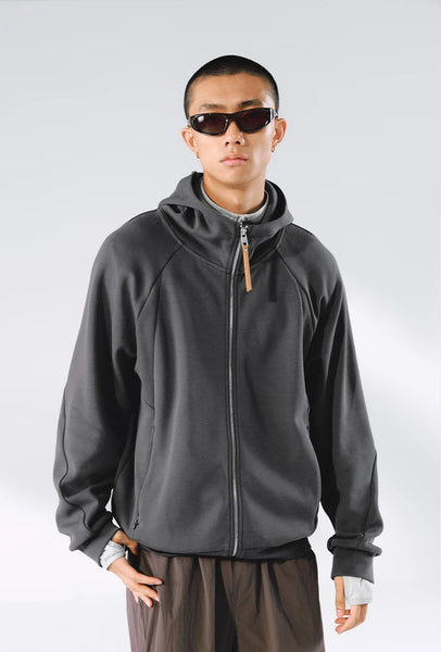 Hooded design combines style and practicality. Dropped shoulders accommodate different shoulder types, creating simple and casual look that enhances wearability and appearance. Three-dimensional cut design offers contemporary edge.