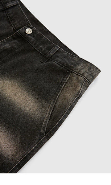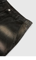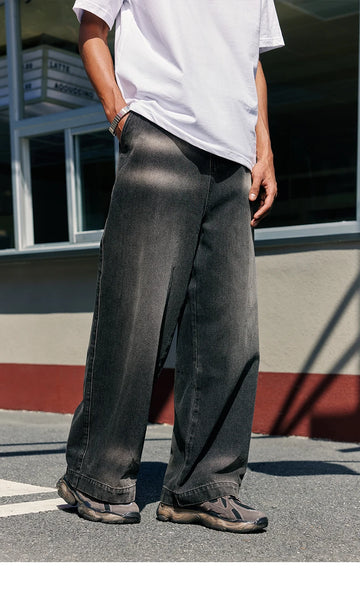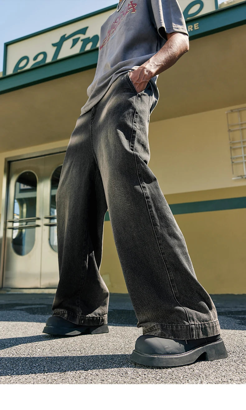 Embrace high street edge with the Midnight Jeans. These distressed wide-leg jeans feature classic washed black denim with fake zipper details, perfect for those who value urban styling, relaxed fit, and timeless appeal.