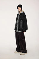 Fashionable unisex styling ensures inclusive fit and contemporary appeal. Hooded design adds functional versatility and street-ready attitude. Mandarin collar creates distinctive neckline and classic biker aesthetic.