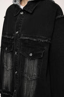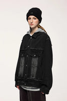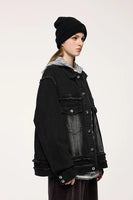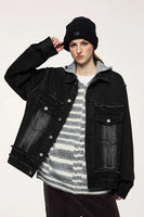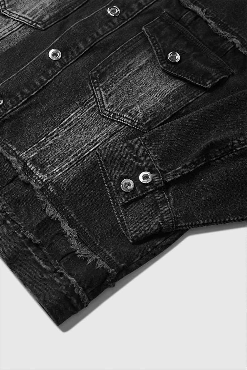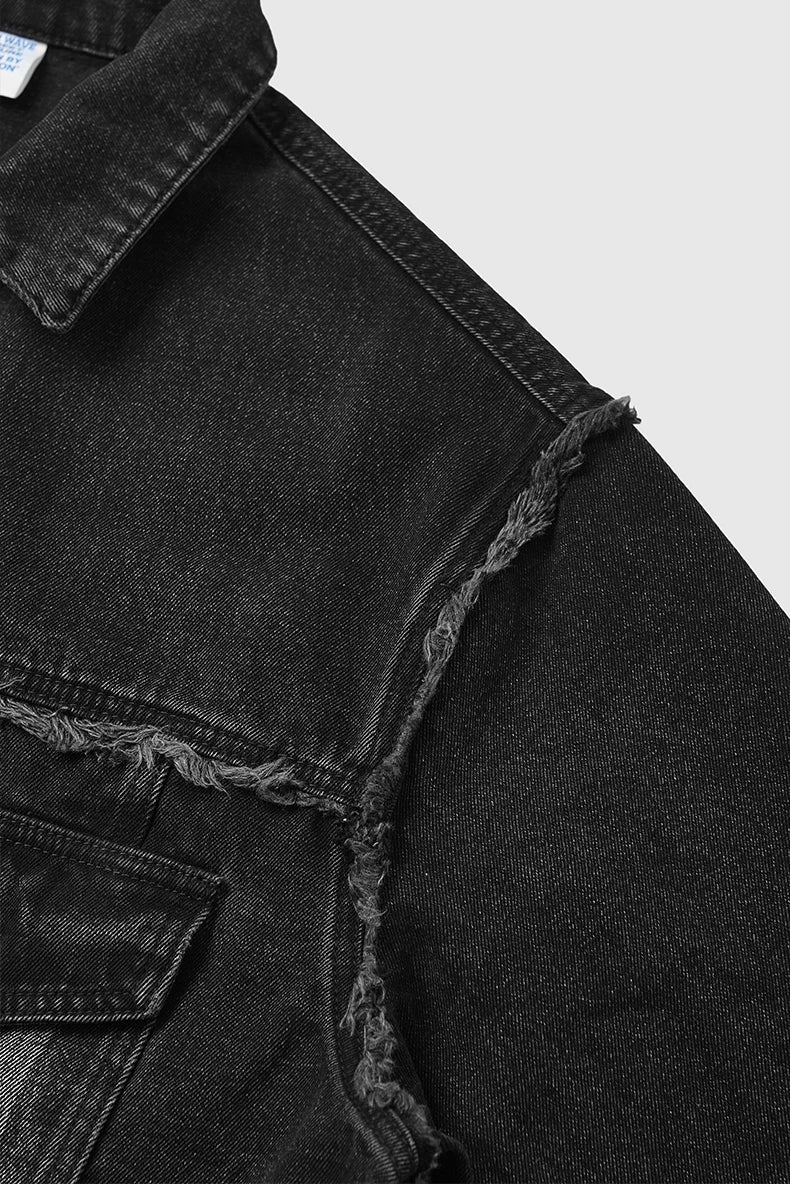 Authentic distressed and frayed details deliver road-worn character and rebellious appeal. BF American biker style honors motorcycle culture and freedom spirit. Short outerwear design offers contemporary proportions and versatile layering.