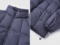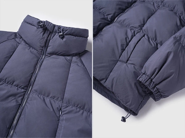 Premium 90% white duck down fill delivers exceptional insulation and cozy warmth. Thick construction ensures protection in extreme cold. Toast-level warmth keeps you comfortable in autumn and winter conditions.