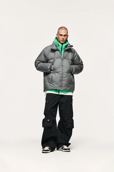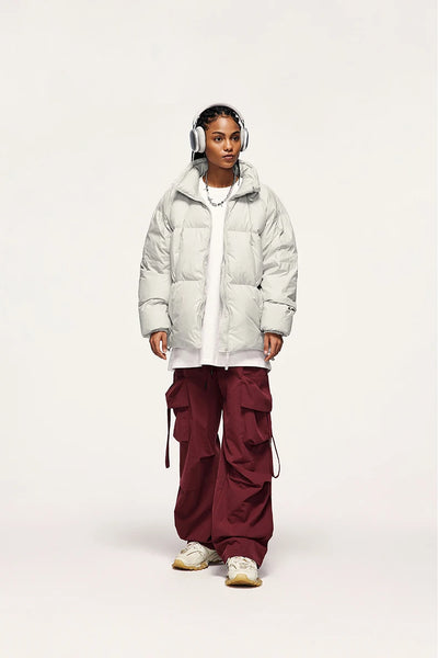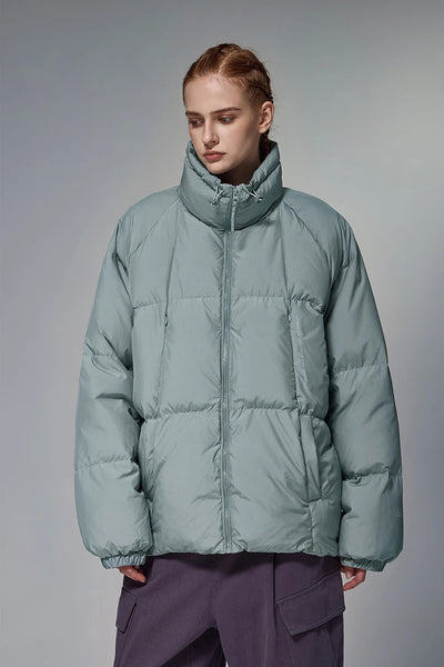 Embrace cozy insulation with the Toast Warm Puffer. This 90% down jacket features Teflon coating with minimalist solid color design and high collar, perfect for those who value premium warmth, technical protection, and clean aesthetics.