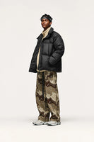 Crafted with premium 100% polyester shell featuring zipper closure and high collar with polyester lining, this down puffer combines practicality with styling versatility.