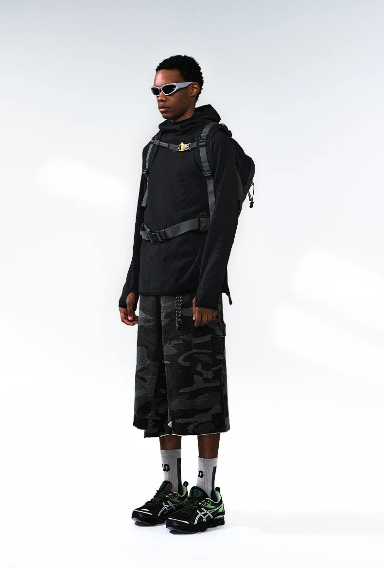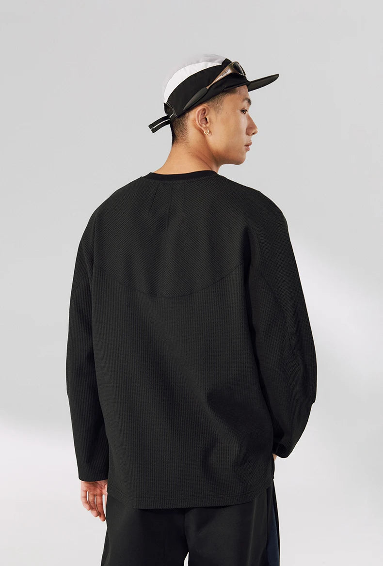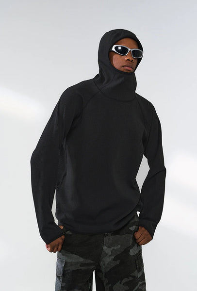 Crafted with premium advanced fiber featuring hooded design and loose fit with knit construction, this waffle hoodie combines practicality with styling versatility.