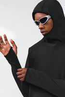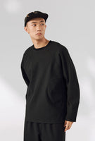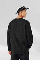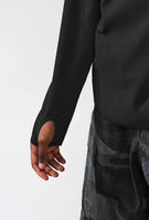 Three-dimensional cut fits the body's curves. Elasticated cuffs and hem make it more inclusive of different body types. Four-needle six-thread design ensures durability. Thumb loop design on cuffs adds functional convenience.
