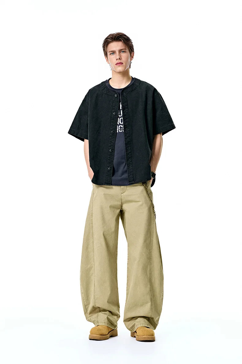 Embrace American utility with the Workwear Arc Cargo Pants. These curved hem cargo pants feature streetwear baggy washed design with workwear construction, perfect for those who value functional durability, relaxed comfort, and contemporary edge.